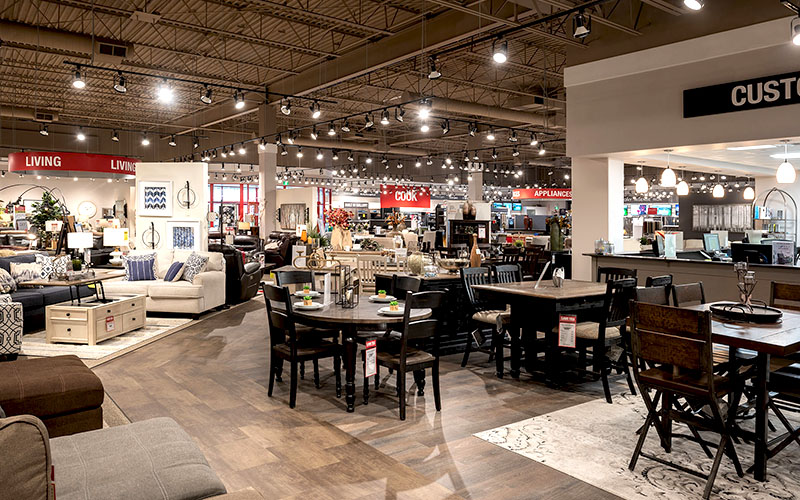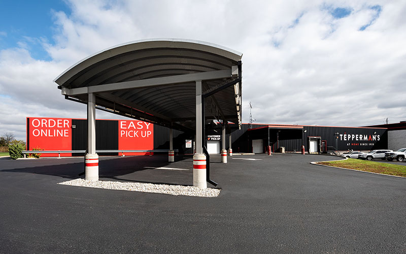 This commercial construction project was undertaken in seven phases to accommodate the client’s ability to remain operational throughout the process. Renovated areas included the interior, and exterior of an existing furniture and appliance retail store, as well as the addition of a covered vehicle pick up area.